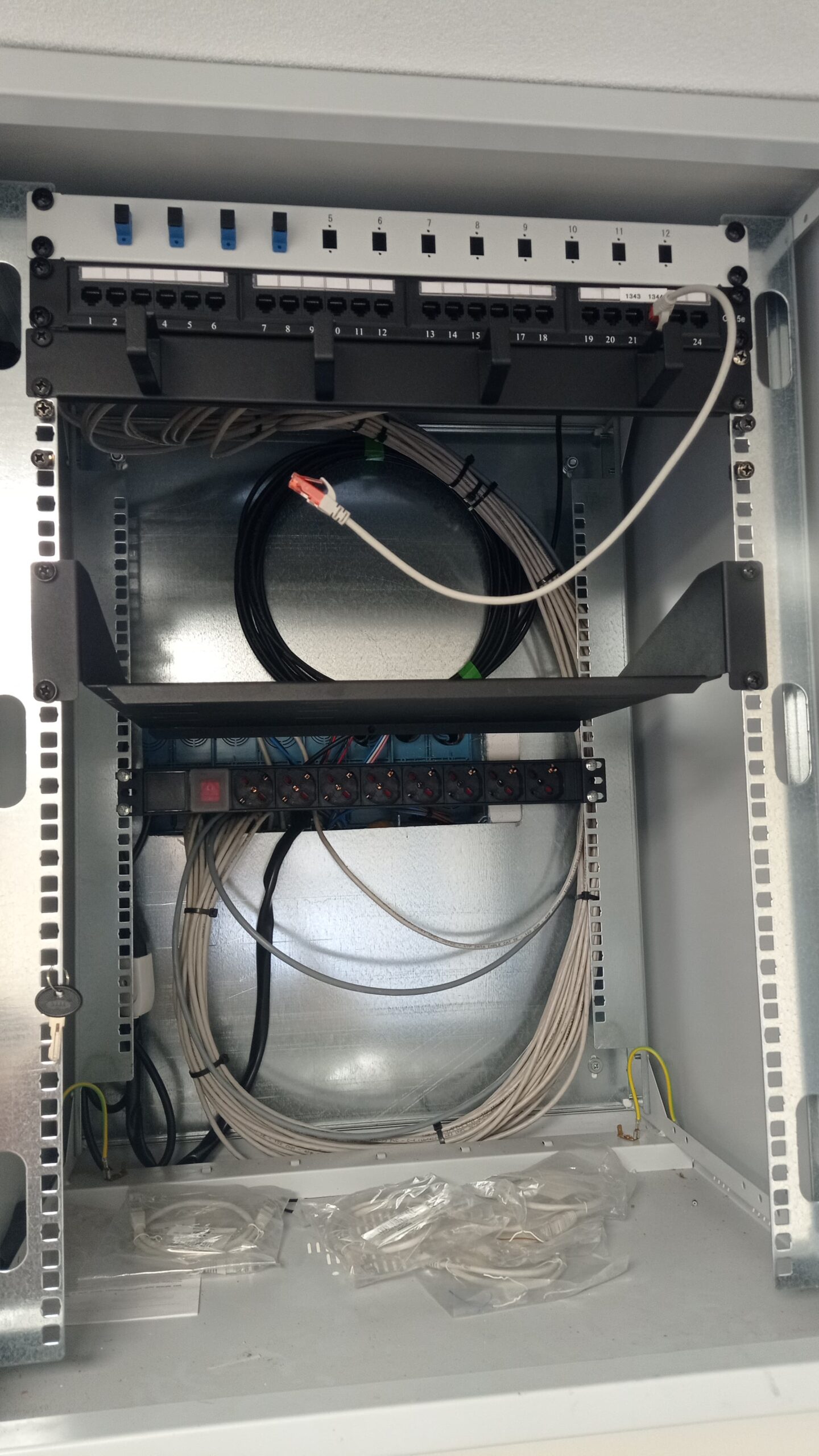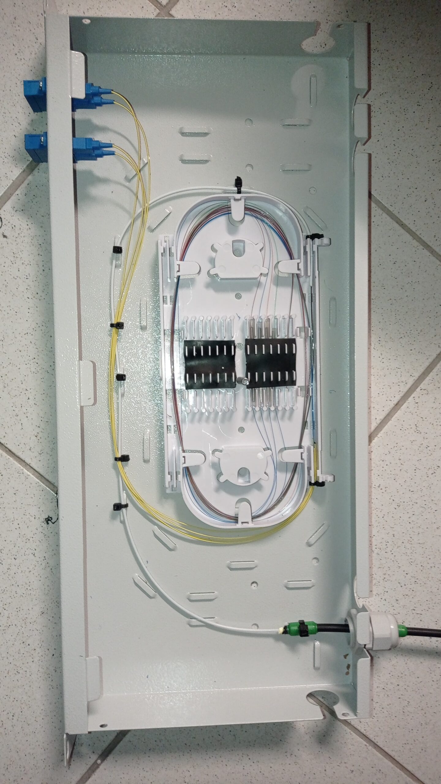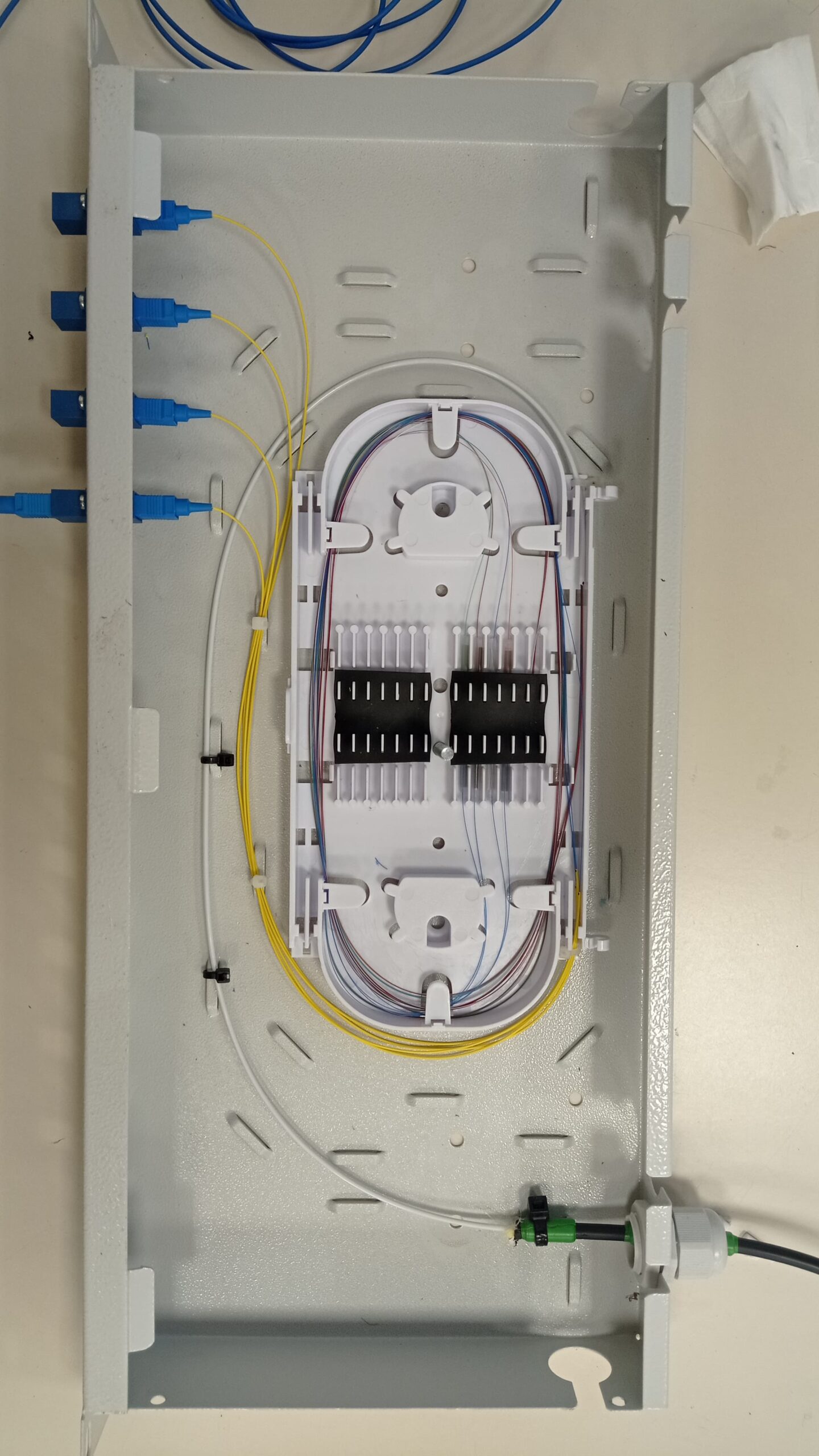 - Installazione di 2 cassetti ottici all’interno dei rack, garantendo un alloggiamento sicuro e professionale delle fibre.